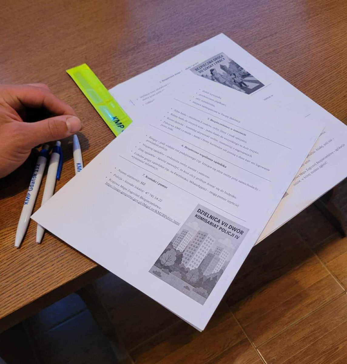 Podczas spotkania omówiono m.in. zasady zabezpieczania domów i mieszkań oraz sposoby unikania kradzieży oraz reagowania w sytuacjach zagrożenia. Poruszono także zagadnienia bezpiecznego poruszania się po drodze. Mieszkańcy mieli okazję przećwiczyć schemat rozmowy z dyspozytorem numeru alarmowego 112. Uczestnicy spotkania dowiedzieli się także, jak korzystać z Krajowej Mapy Zagrożeń Bezpieczeństwa, oraz poznali założenia Sąsiedzkiego Programu Przeciwdziałania Przestępczości, opartego na wzajemnej czujności i współpracy.