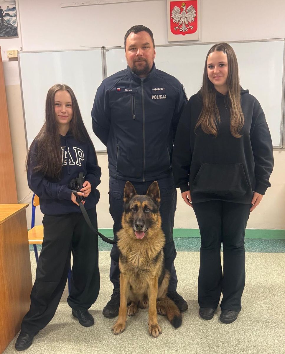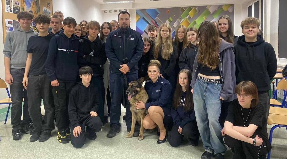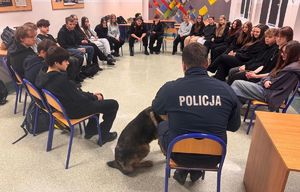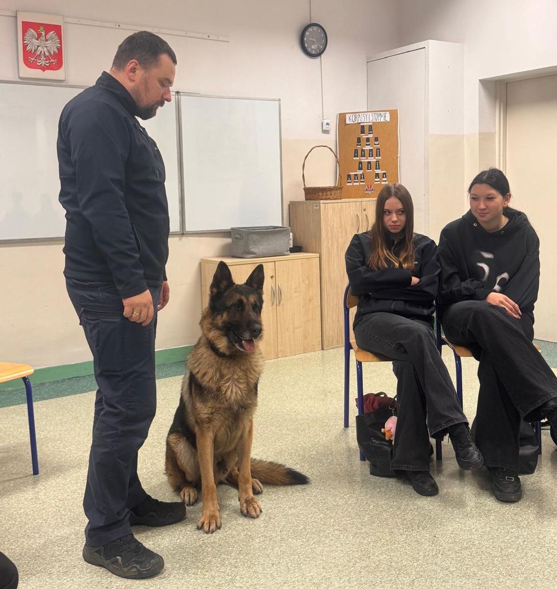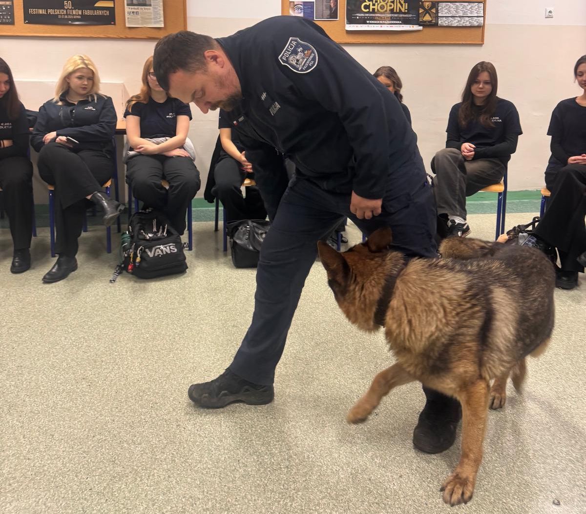 Przewodnik psa służbowego spotkał się z uczniami klas mundurowych