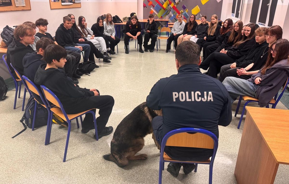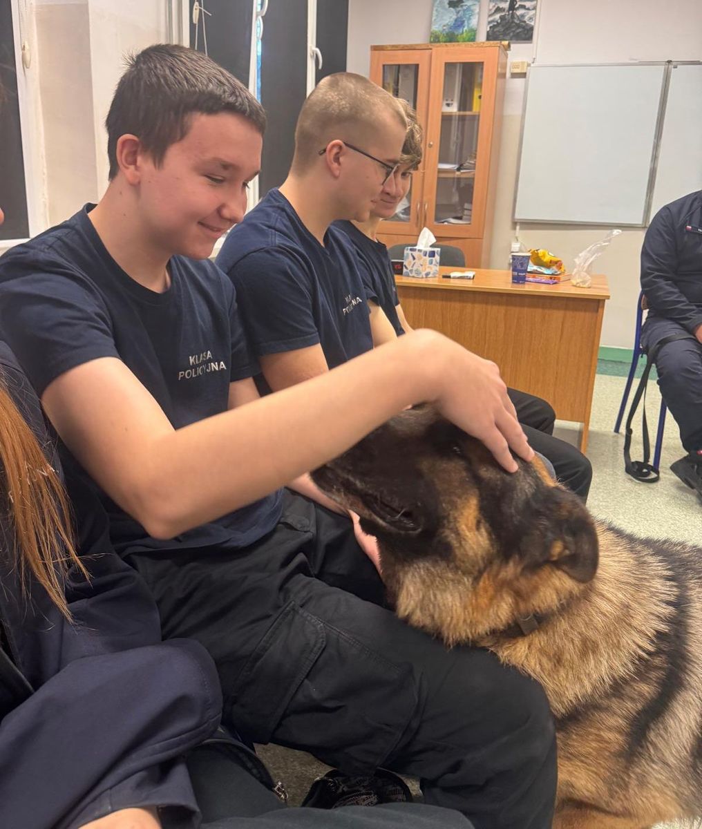 St.asp. Łukasz Wrzoskowicz - przewodnik psa służbowego spotkał się z uczniami klas policyjnych IV Liceum Ogólnokształcącego w Gdańsku. Policjant opowiedział młodzieży o tym, jak został przewodnikiem i pokazał, jak wygląda przygotowanie do służby czworonożnego „funkcjonariusza”. Uczniowie dowiedzieli się jakie kryteria należy spełnić, aby pracować jako policyjny przewodnik i jakie cechy charakteru trzeba mieć, aby czerpać satysfakcję z tego rodzaju służby.