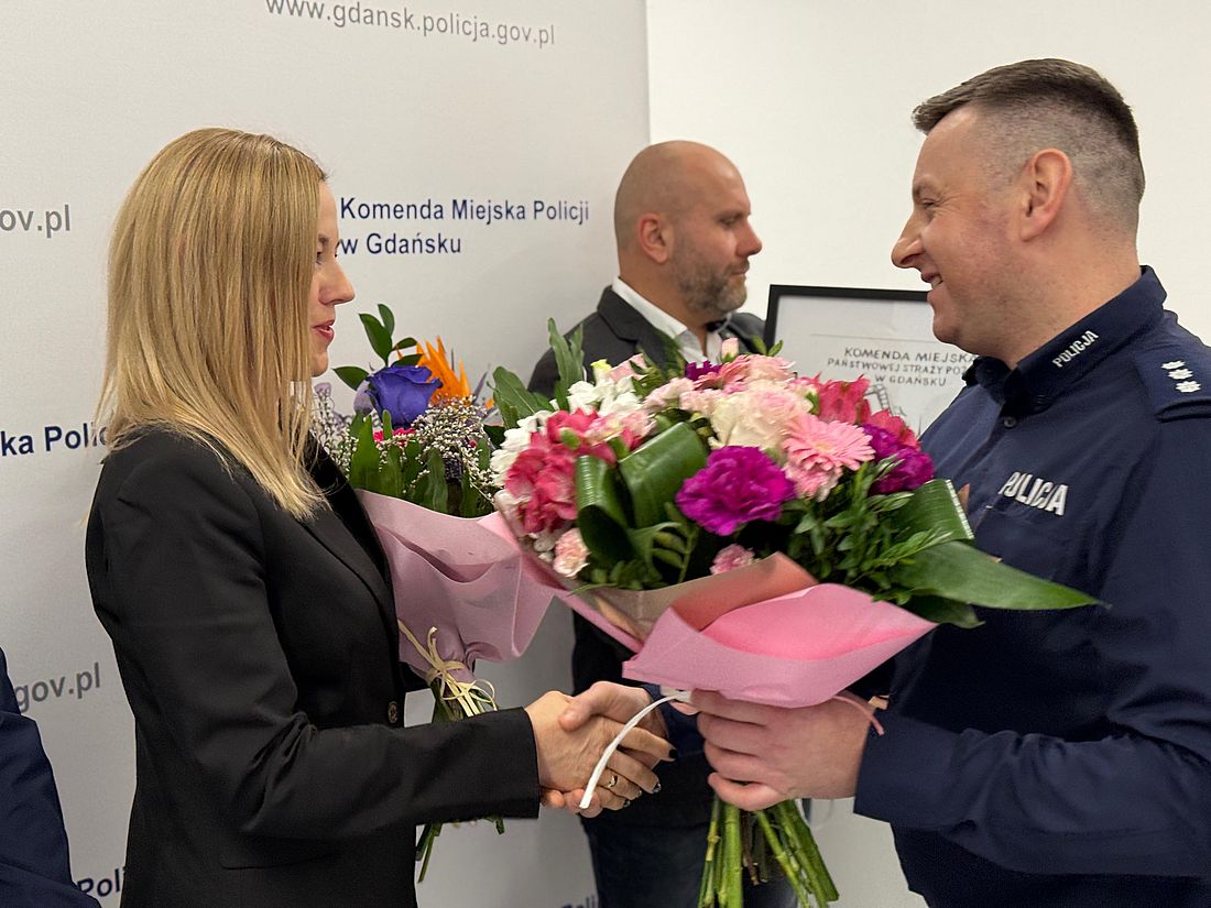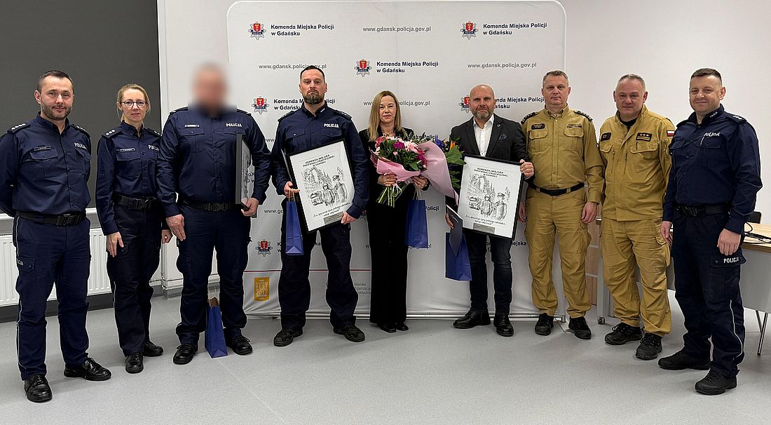 Podziękowania złożyli także I Zastępca Komendanta Miejskiego Policji w Gdańsku nadkom. Jarosław Neumann, Naczelnik Wydziału Prewencji KMP w Gdańsku kom. Tomasz Kreft oraz Komendant Komisariatu IX w Gdańsku kom. Katarzyna Okupińska, którzy docenili zdecydowane i skoordynowane działanie osób biorących udział w akcji. Jak powiedzieli, to dzięki nim możliwe było uratowanie życia oraz bezpieczne przejęcie działań gaśniczych przez Straż Pożarną po jej przybyciu na miejsce.