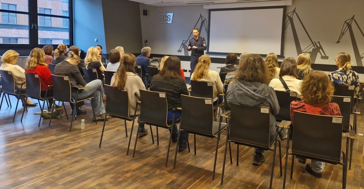 Policjant wydziału prewencji gdańskiej komendy spotkał się z pracownikami Europejskiego Centrum Solidarności. Podczas szkolenia funkcjonariusz radził jak zadbać o bezpieczeństwo w miejscu pracy oraz mówił o sposobach reagowania na zachowania agresywne oraz niestandardowe ze strony klientów.