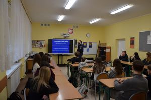 Uczniom zaprezentowano również materiał filmowy obrazujący najczęstsze niebezpieczne sytuacje występujące w przestrzeni internetowej. W związku z projektem „Bezpieczny nastolatek w świecie cyfrowym” omówiono także regulamin konkursu, do którego mogą przystąpić uczniowie. Zadanie konkursowe polega na przygotowaniu spotu promującego bezpieczeństwo w internecie.
