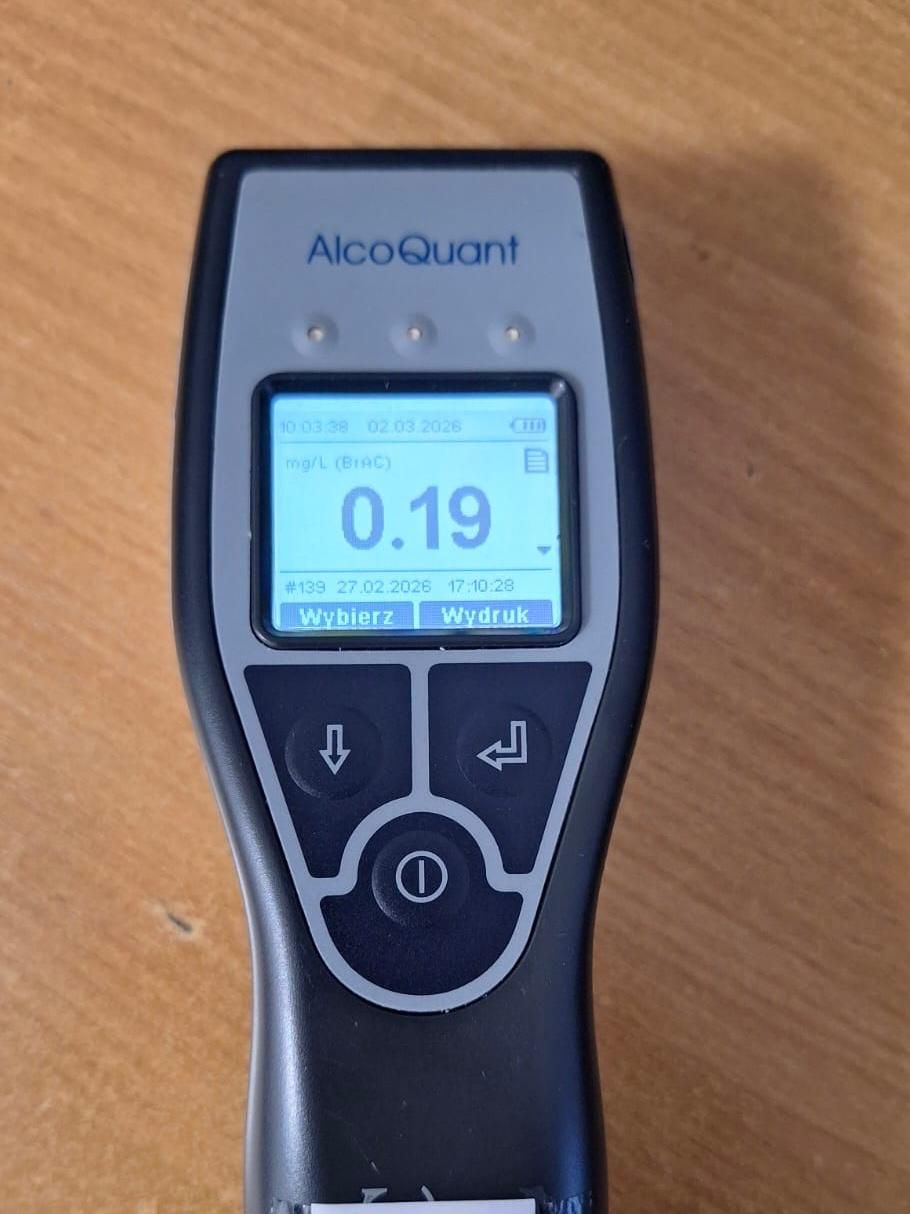 Kierujący został poddany badaniu na zawartość alkoholu w wydychanym powietrzu. Wynik potwierdził przypuszczenia mundurowych, urządzenie wykazało 0,40 promila alkoholu w organizmie. Mężczyzna został doprowadzony do komisariatu, w celu sporządzenia dokumentacji. Z uwagi na stan po użyciu alkoholu, policjanci sporządzili wobec niego wniosek o ukaranie do sądu.